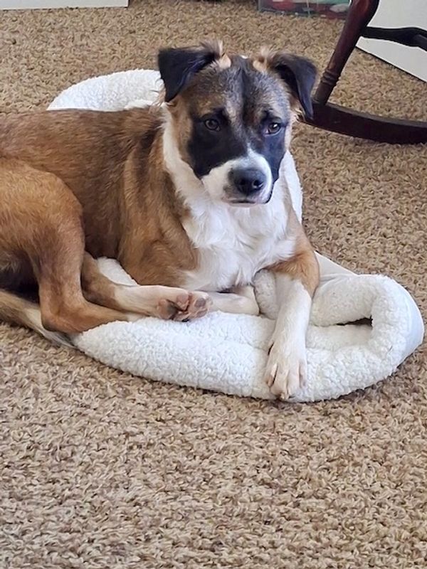 Bernadette is a loving 1 year old Aussie mix. She likes other dogs, but is not fond of cats. She is cuddly and as sweet as apple pie. She loves to spend her time outside, so a fenced yard would be ideal. Adoption fee of $85 covers all shots, chip and spay.